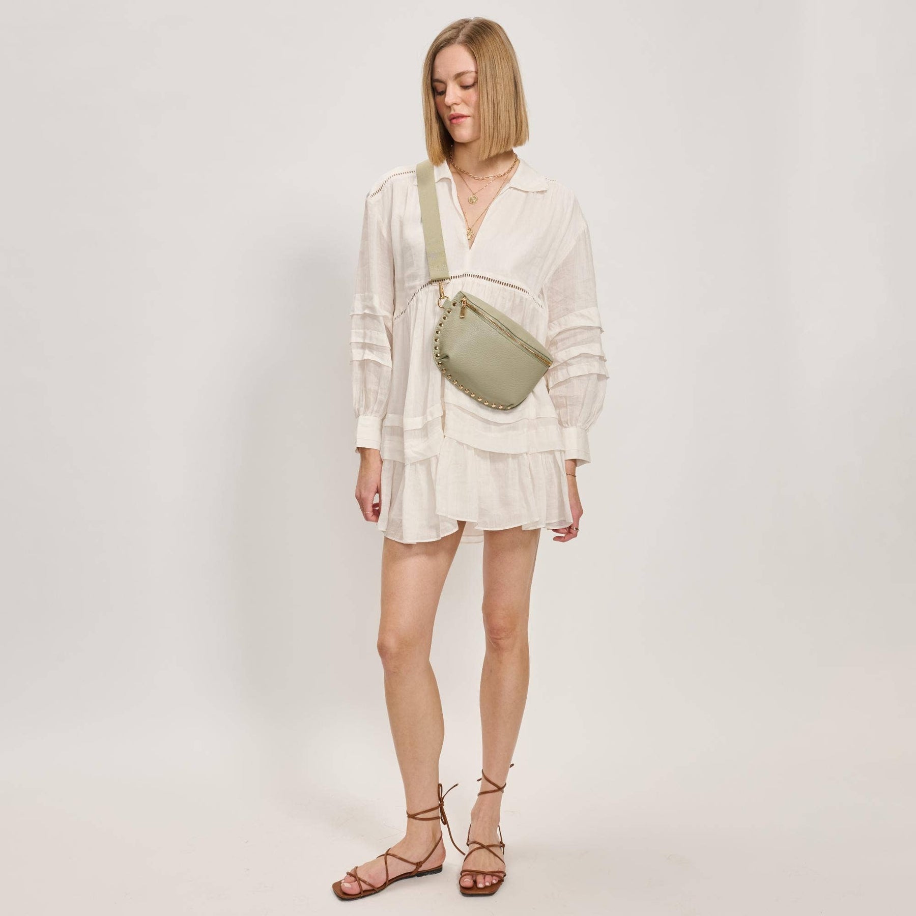 The Gizelle Belt Bag pairs contemporary design with everyday functionality. This vegan leather essential features eye-catching stud accents and a streamlined profile that works seamlessly across your wardrobe. A hidden back zipper and adjustable strap offer practical versatility, while the printed fabric-lined interior keeps your belongings organized with a dedicated zip pocket and slip pocket. Whether you're running errands or heading out for the evening, the Gizelle delivers understated sophistication with the storage you need. A timeless accessory that balances style with smart, purposeful design.