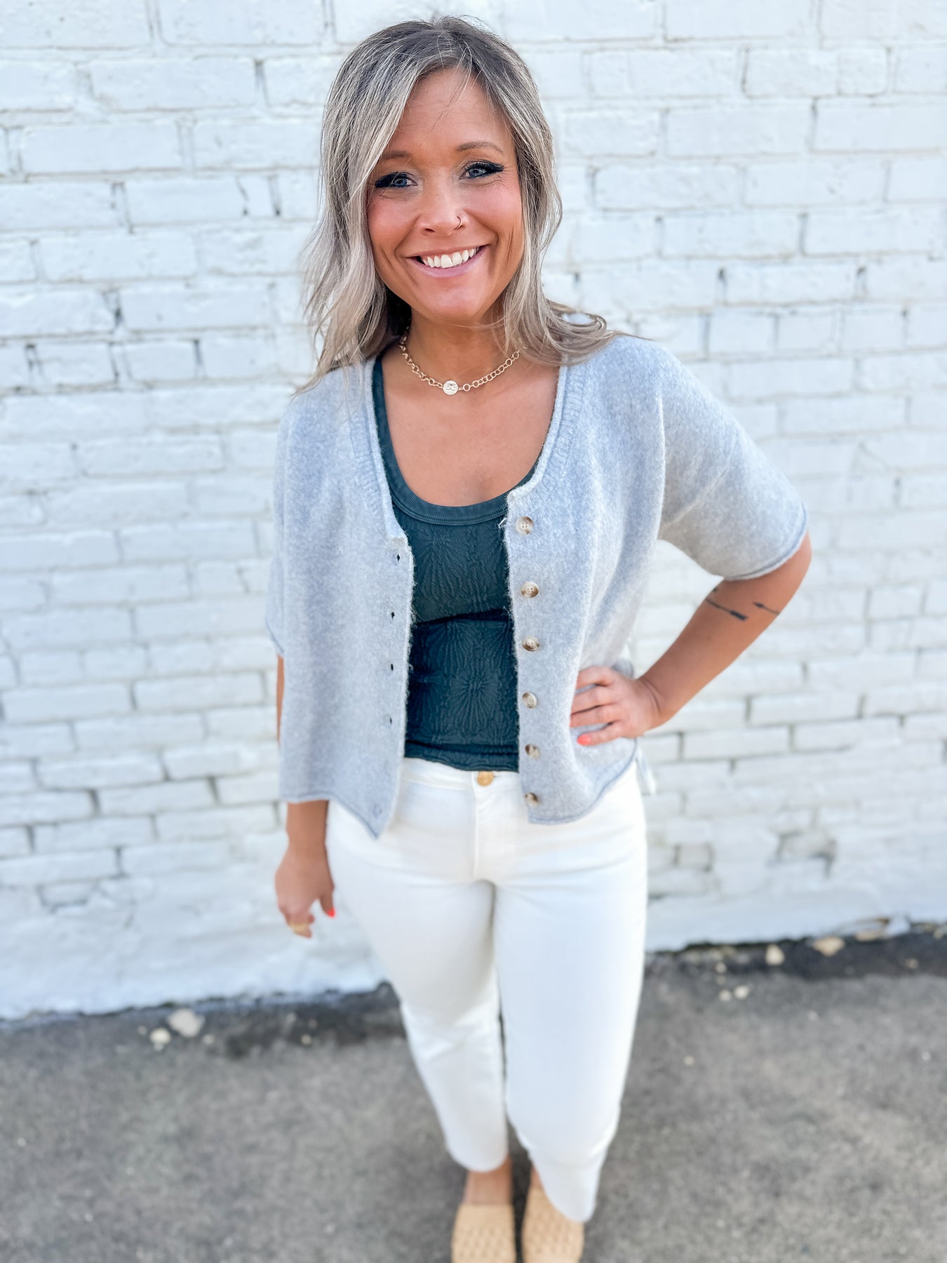 The one size fits most textured tank. Soft and stretchy this tank makes a statement layer under jackets, cardigans, button downs, or simply on its own. Comes in a variety of colors. Reversible for options to wear.