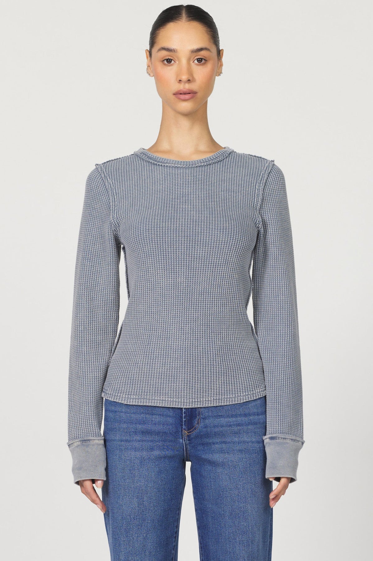The Ania thermal long sleeve crew neck strikes the perfect balance between elegance and ease. Its slim fit and classic color offer a sleek, flattering look, while the waffle texture brings a contemporary edge. Whether layered or worn alone, this top is a versatile essential that elevates your everyday wardrobe with refined simplicity. Gorgeous high-quality waffle knit!