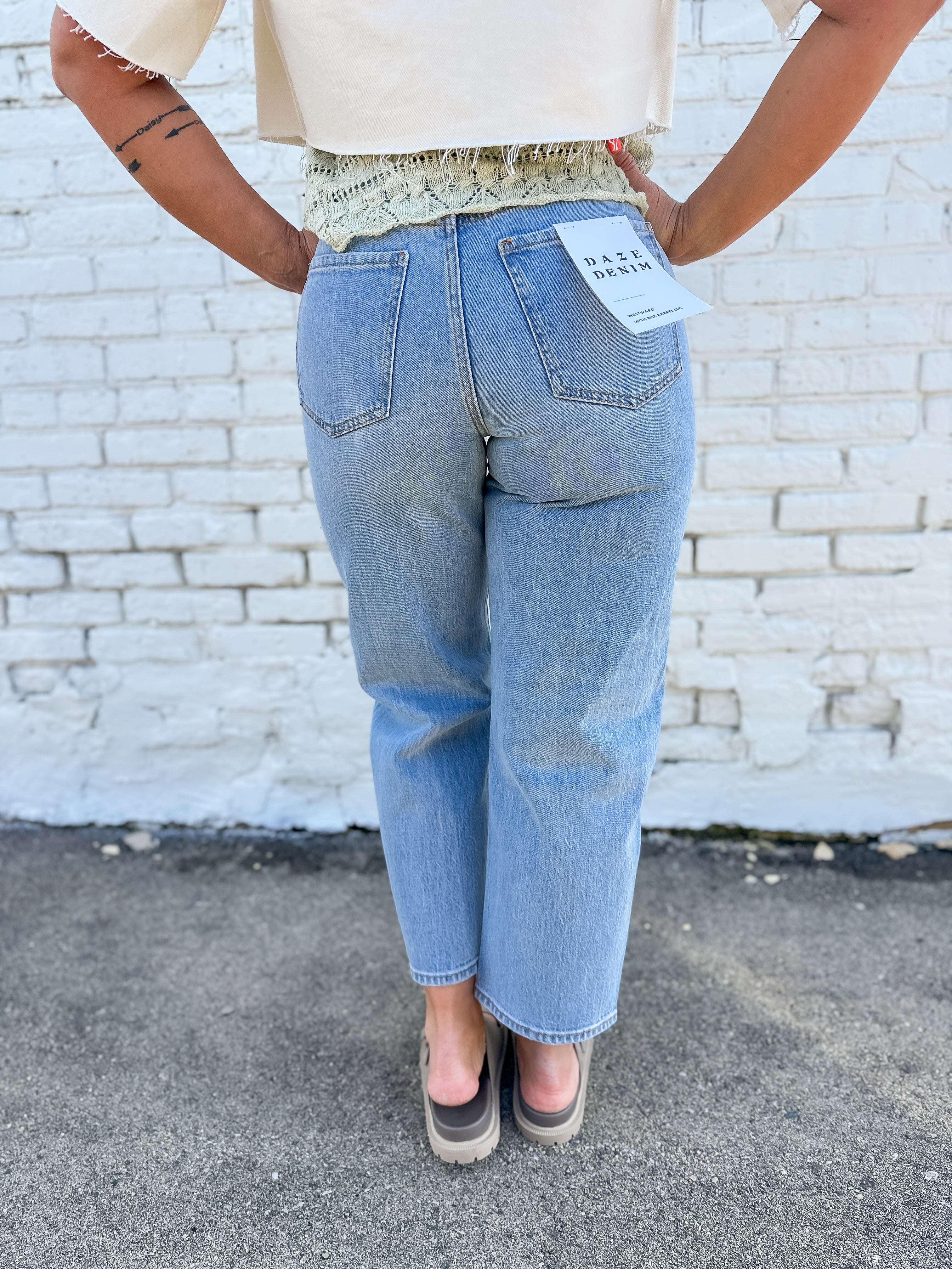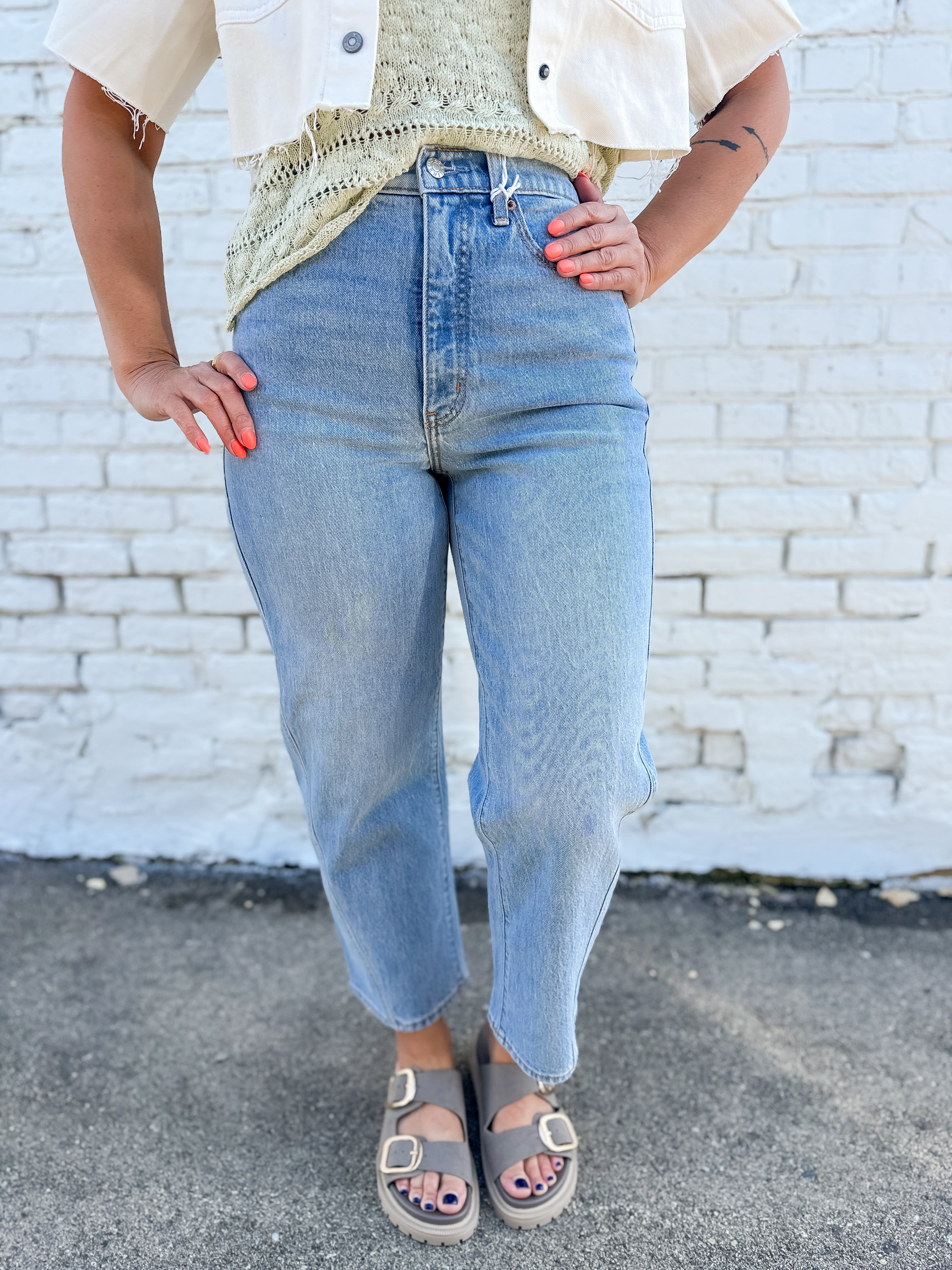 The Westward in Pulse is a high rise jean with a barrel leg silhouette, featuring a cinched waist, bowed leg, and slightly tapered ankle against a vintage-inspired light wash. Constructed from our Tough Love denim, it’s mostly rigid while yielding to your body in all the right ways. This is your go-to everyday easy barrel denim.