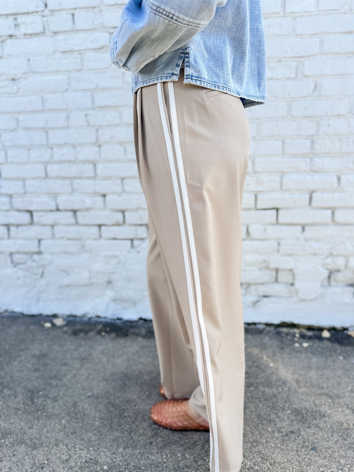Track Pants but make them elevated. The MacKenzie brings the best of both worlds. This pant brings in the track pant trend but in an elevated trouser that can stand the test of both the workday as well as Mom on the go. Pair with a low profile sneaker, a tank, and an oversize denim jacket for Mom approved style. Switch to a blazer and pointed toe flat for work mode. A pant that does all the things while keeping you stylish? Yes please.