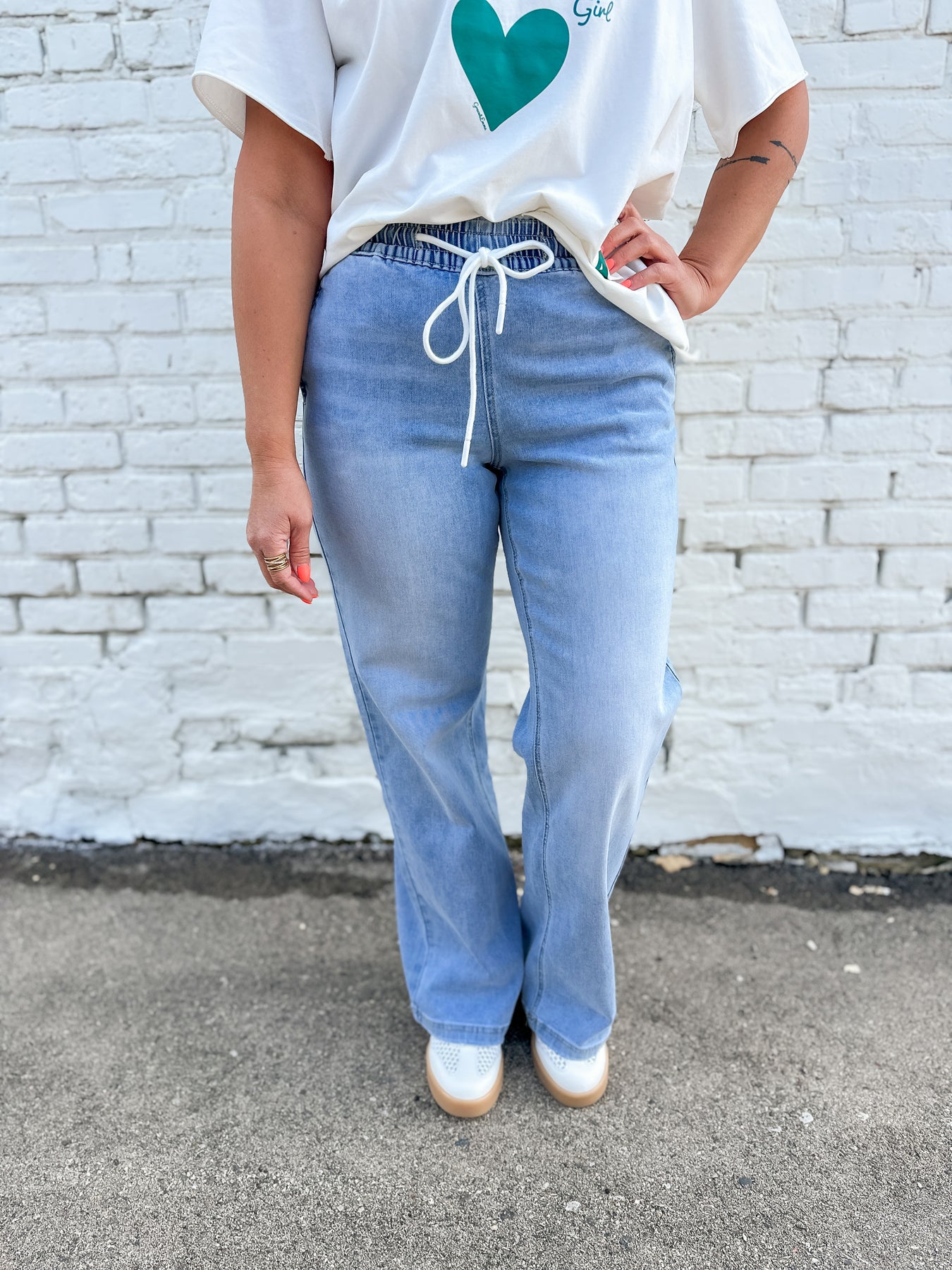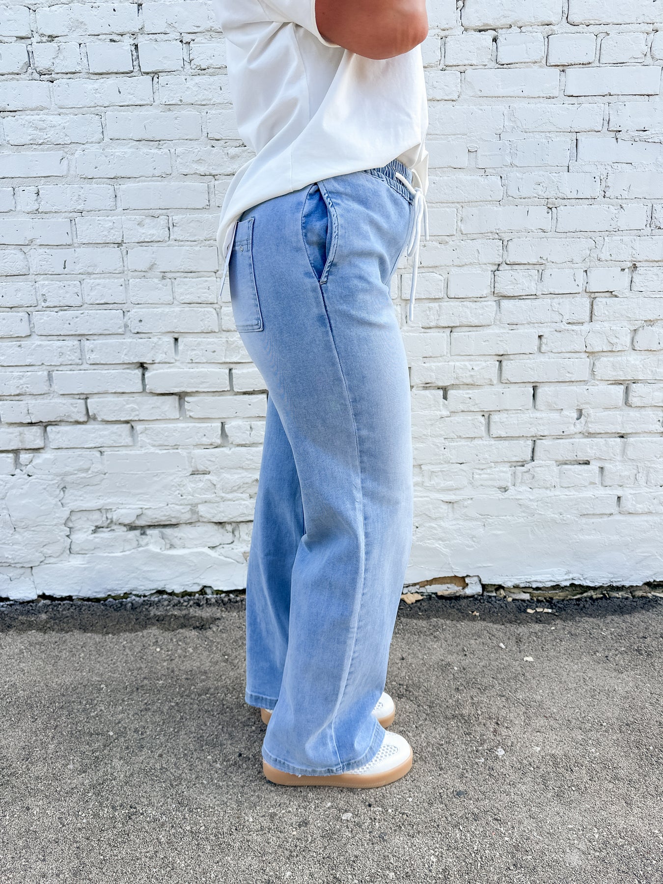 Sweatpants or Jeans? This pair will have you second guessing. The Avery combines the feel of sweats with the pulled together look of denim. This straight leg loose fit denim features a functional drawstring elastic waist for an easy pull-on fit. Super soft and stretchy for all-day wear. The ultimate dress up/dress down denim.