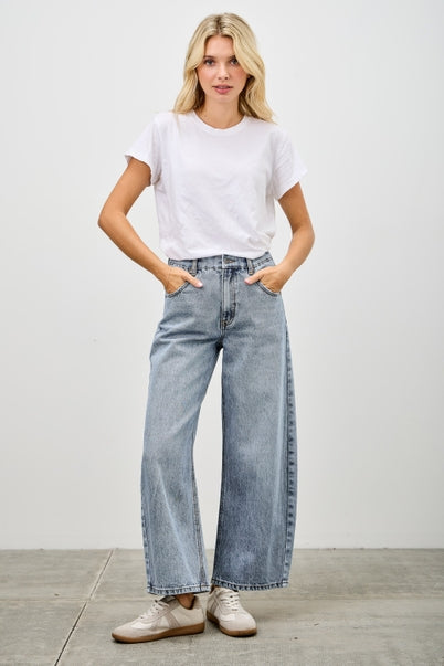 Elevate your everyday look with the SAIGE Marlowe High Rise Barrel—a versatile denim essential. Crafted from a premium cotton-blend fabric with just a touch of stretch for comfort, this high-rise style features a classic zipper fly and functional 5-pocket design. With a 27-inch inseam and relaxed barrel silhouette, it's the perfect balance of timeless and contemporary.