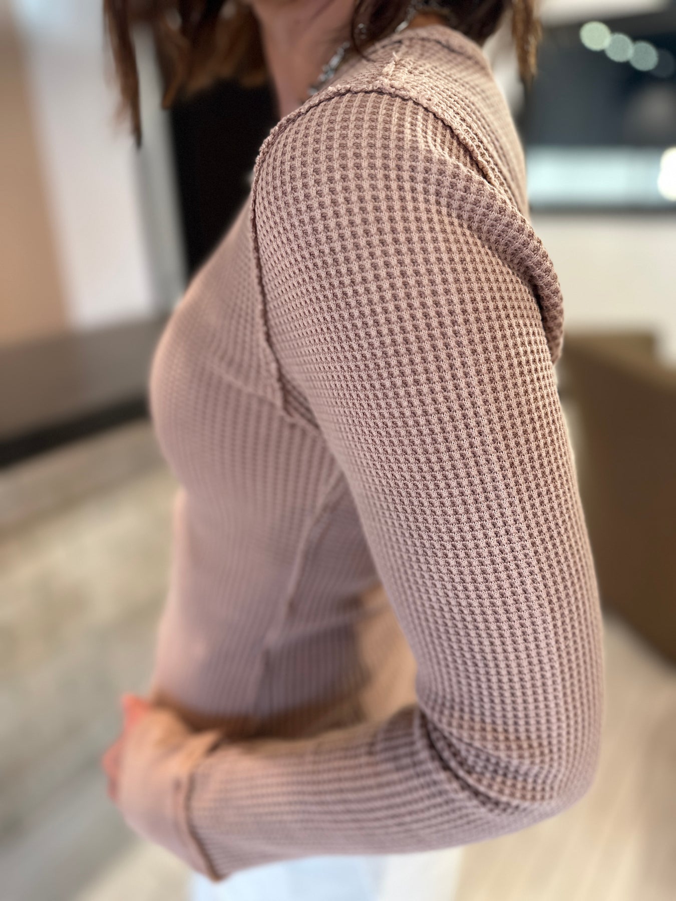 Its waffle texture adds a subtle touch of modernity, this top is your go-to versatile outfit that exudes lifestyle wear. True to size.