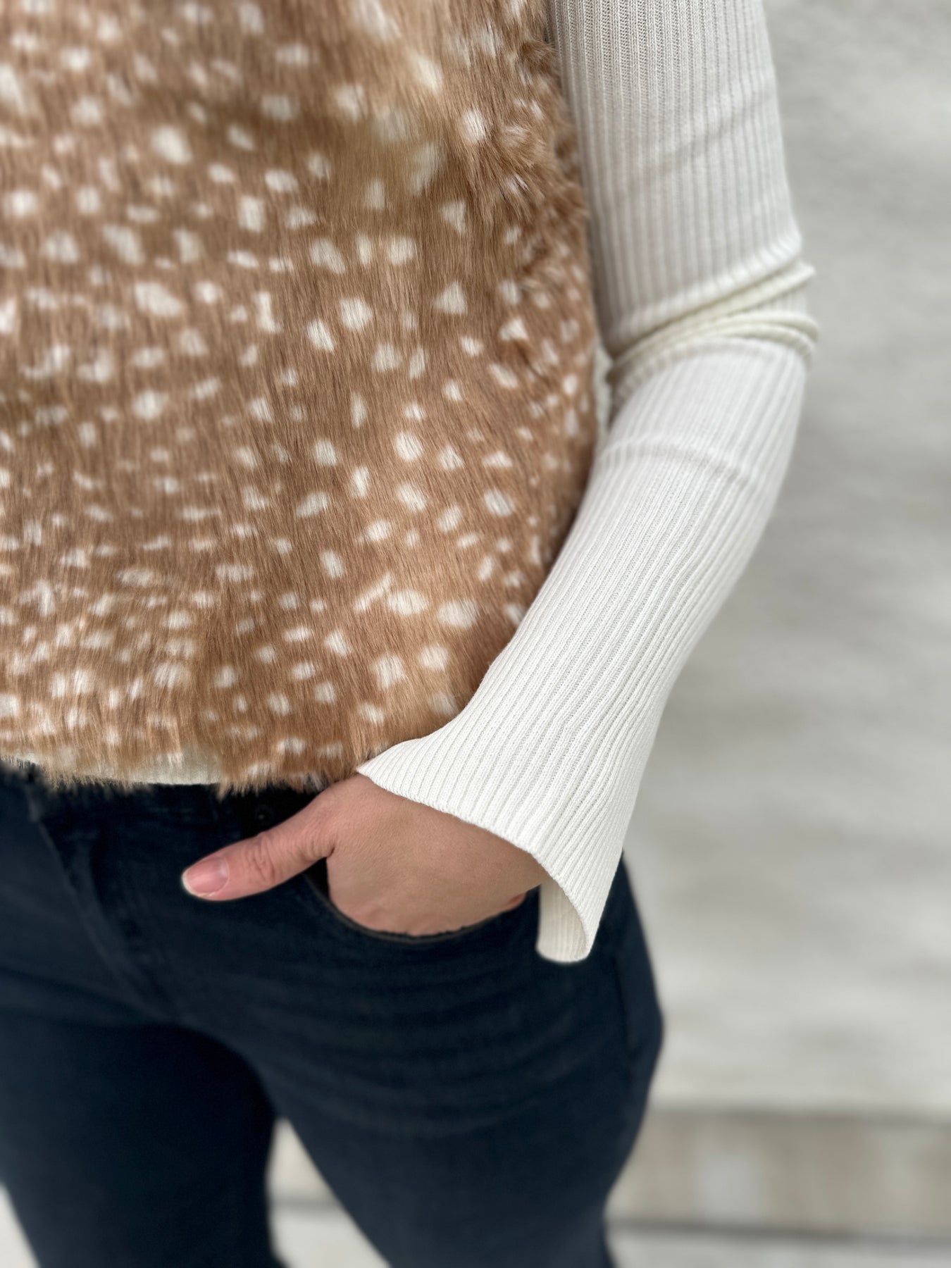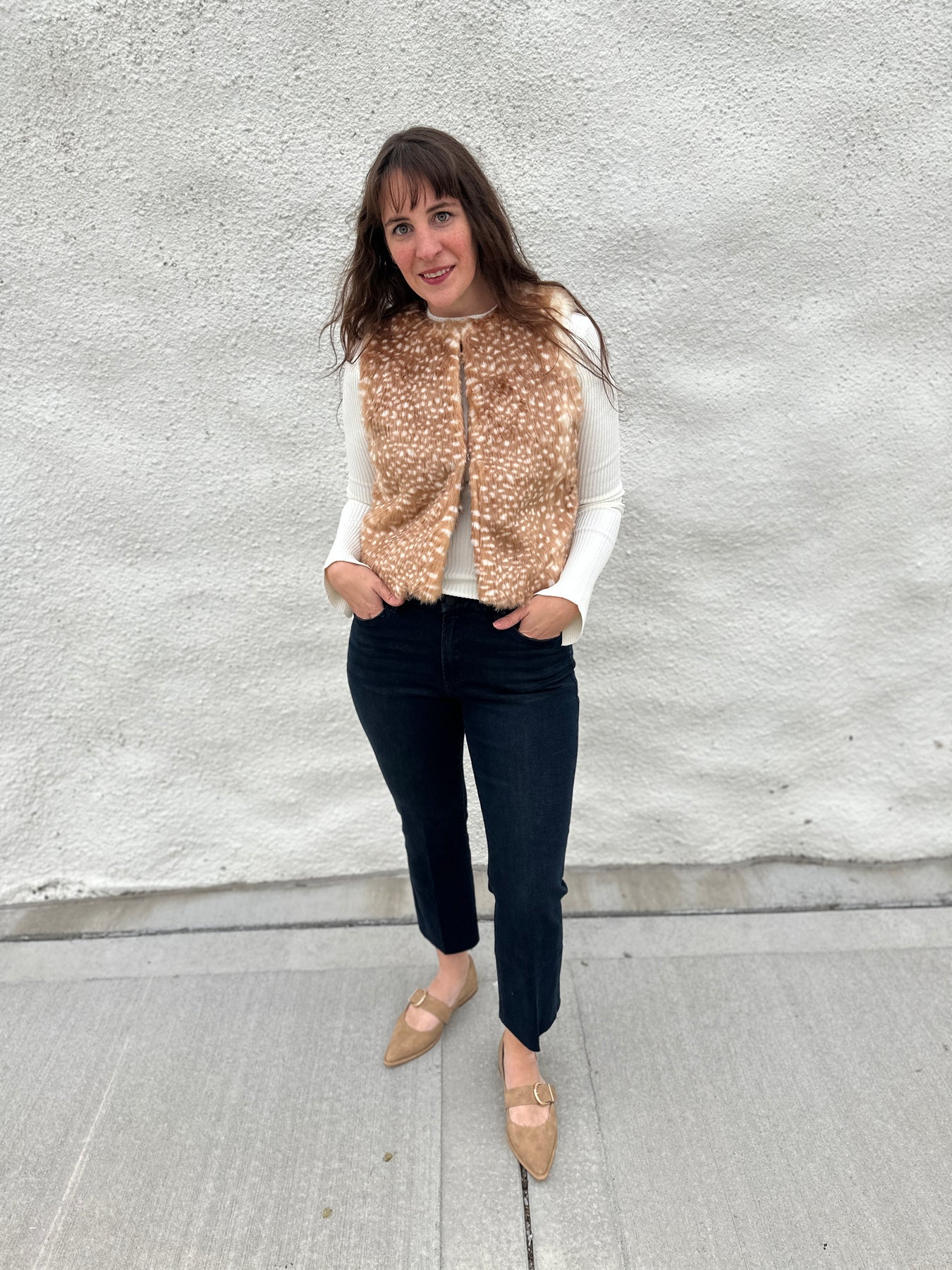 Forget boring layering—The Bambi Faux Fur Vest is here to make getting dressed fun. This plush faux fur beauty in a gorgeous deer shade plays well with everything in your closet, from your favorite sweater to that little black dress. Light enough to wear anytime, it's the secret weapon for looking effortlessly put-together without trying too hard. Your new obsession awaits.