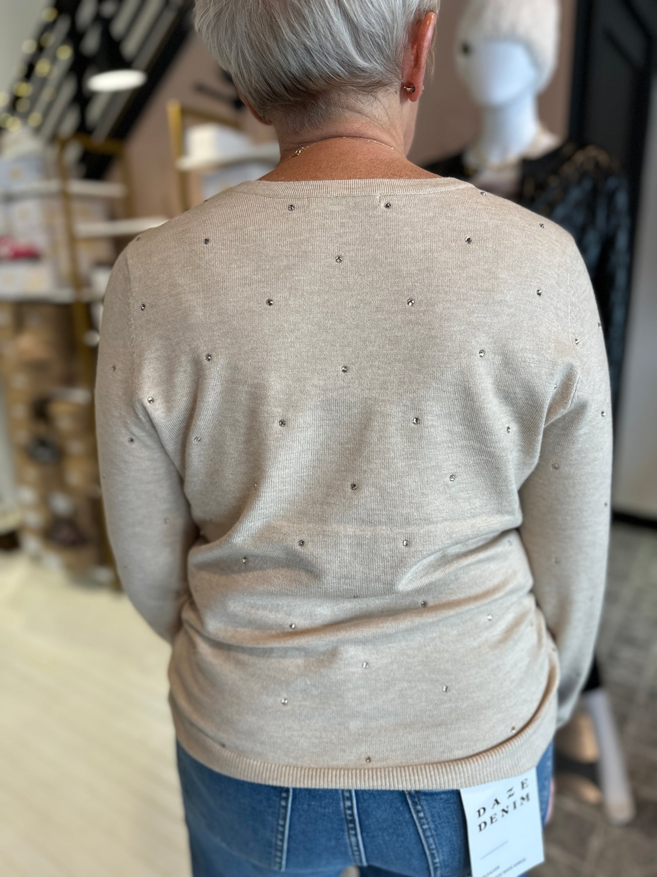 The Gabriella Embellished Sweater combines effortless comfort with subtle glamour. Crafted from an incredibly soft, lightweight fabric, it's perfect for layering or wearing solo without bulk. Delicate rhinestone embellishments add just the right touch of sparkle to elevate your everyday look. Whether you're dressing up a casual outfit or keeping things relaxed, this sweater transitions seamlessly from day to night.