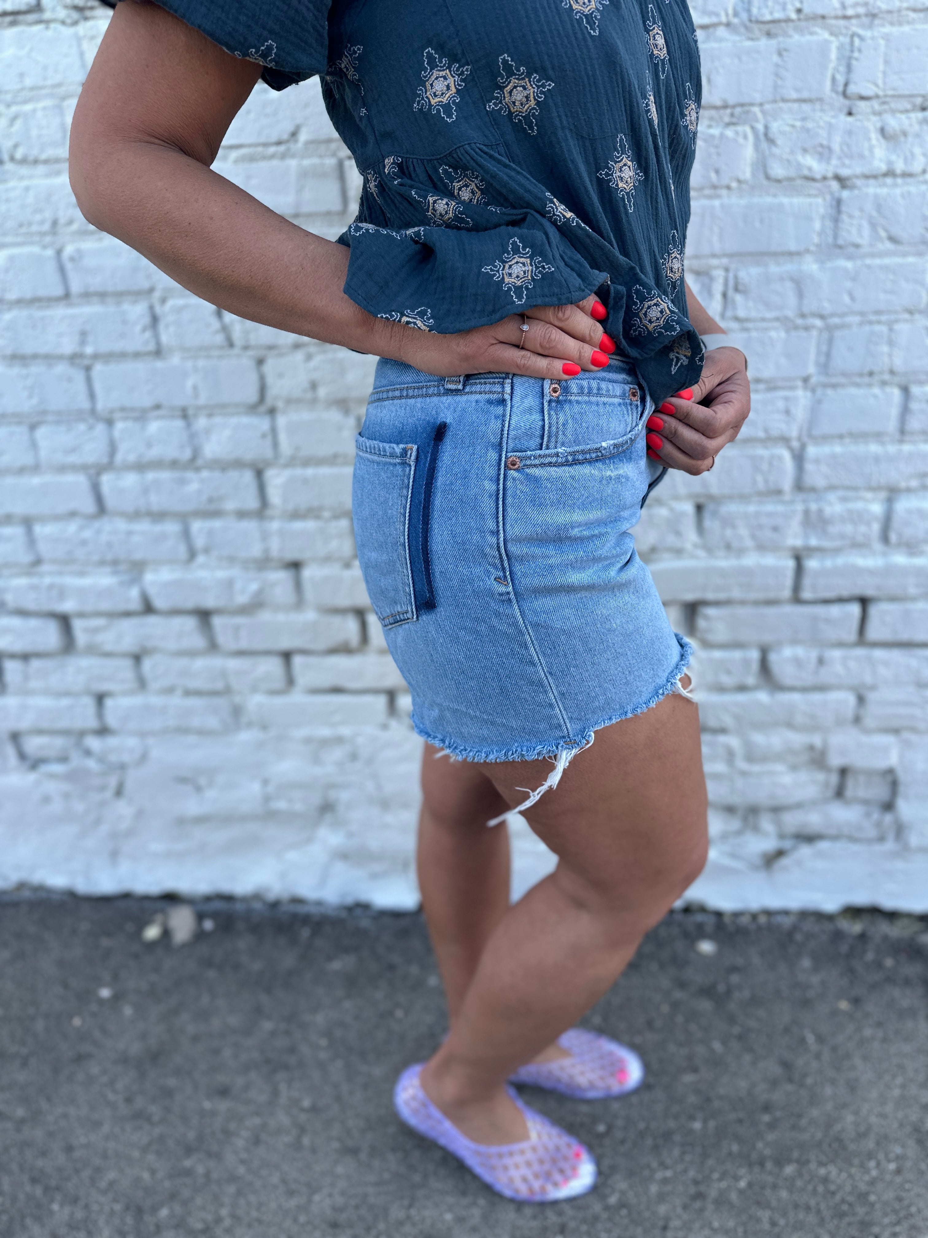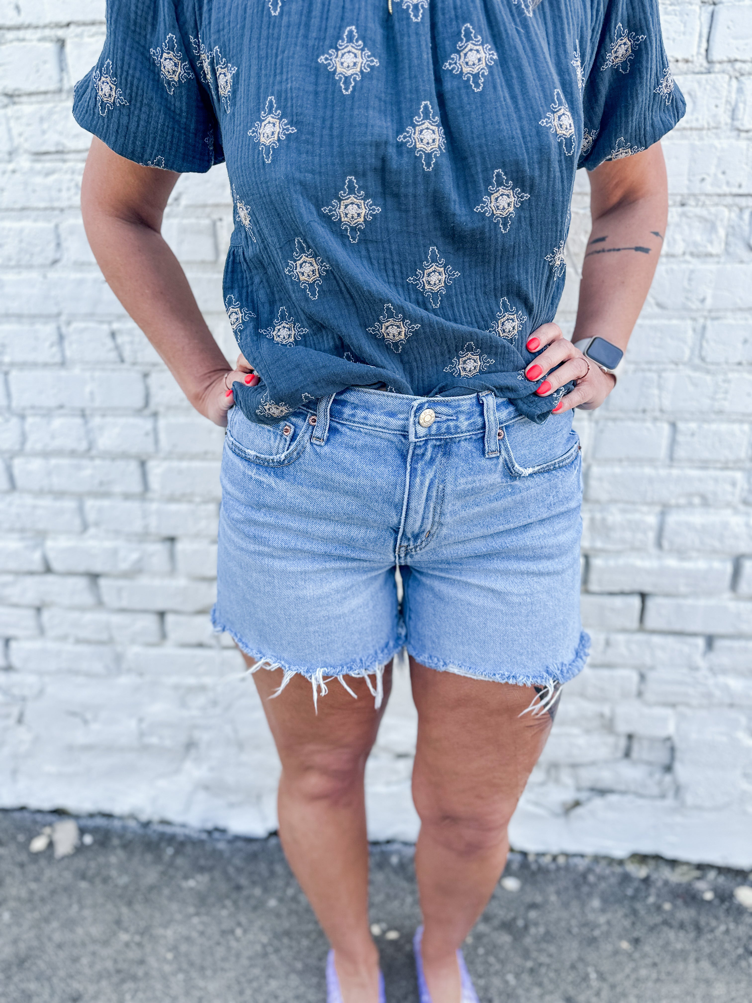 This mid rise loose short is made for easy, throw-on-and-go days. The relaxed fit hits that sweet spot between slouchy and flattering, while the raw hem keeps things casual in the best way. Featuring the coolest back pocket detail. Cut in rigid, non-stretch denim, it holds its shape but softens and molds to you the more you wear it. Basically, your summer uniform.