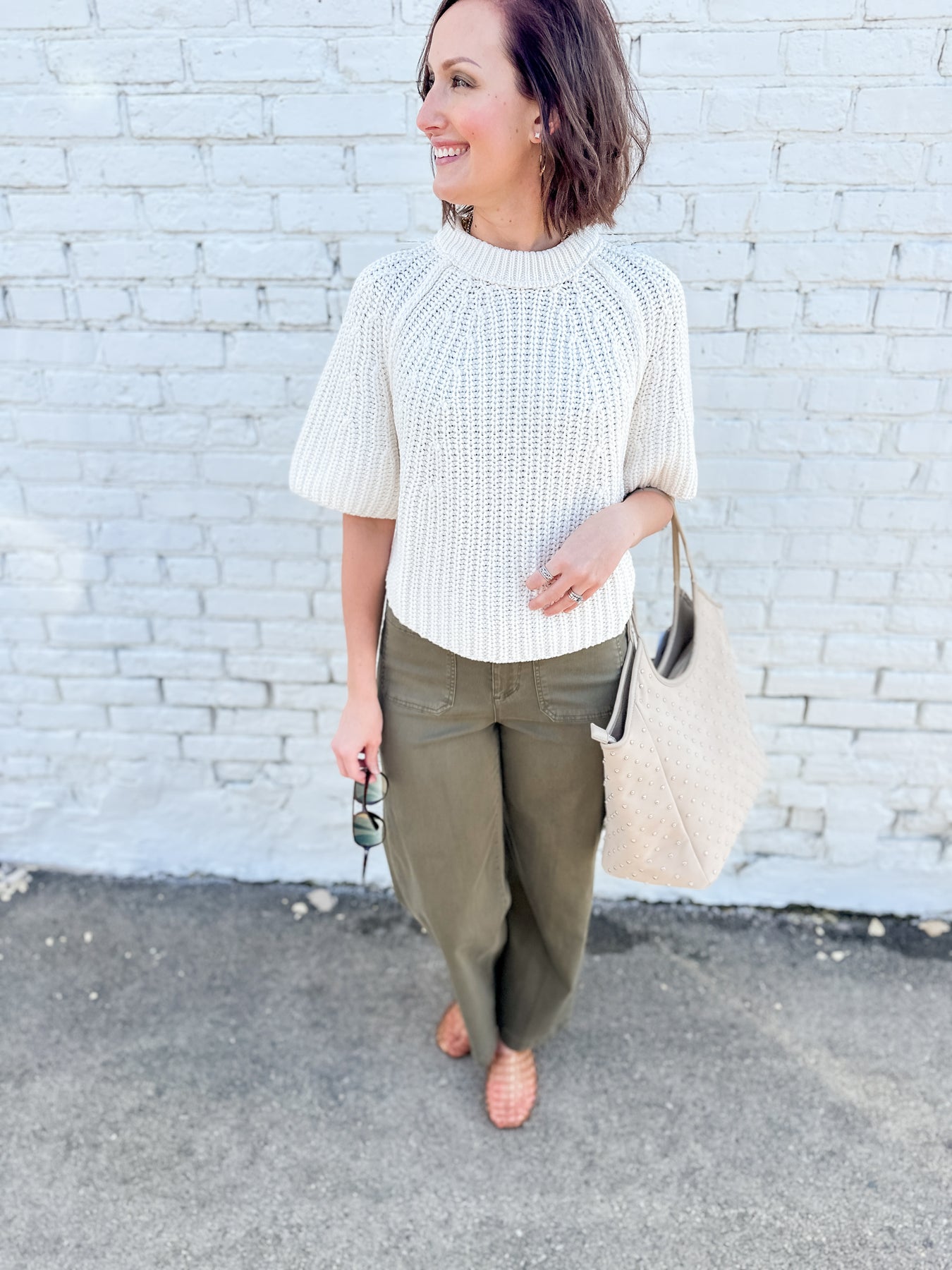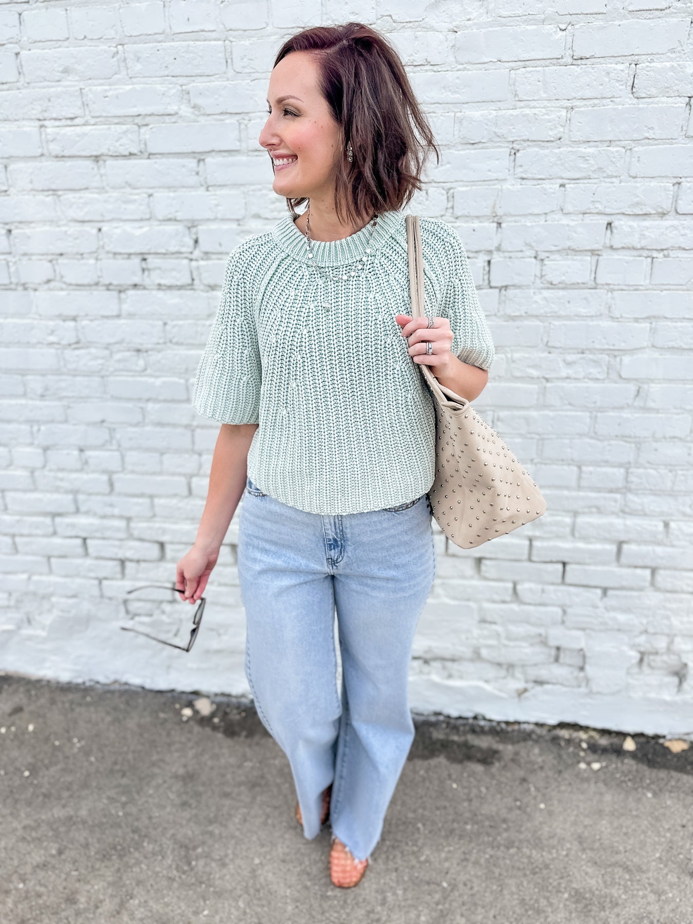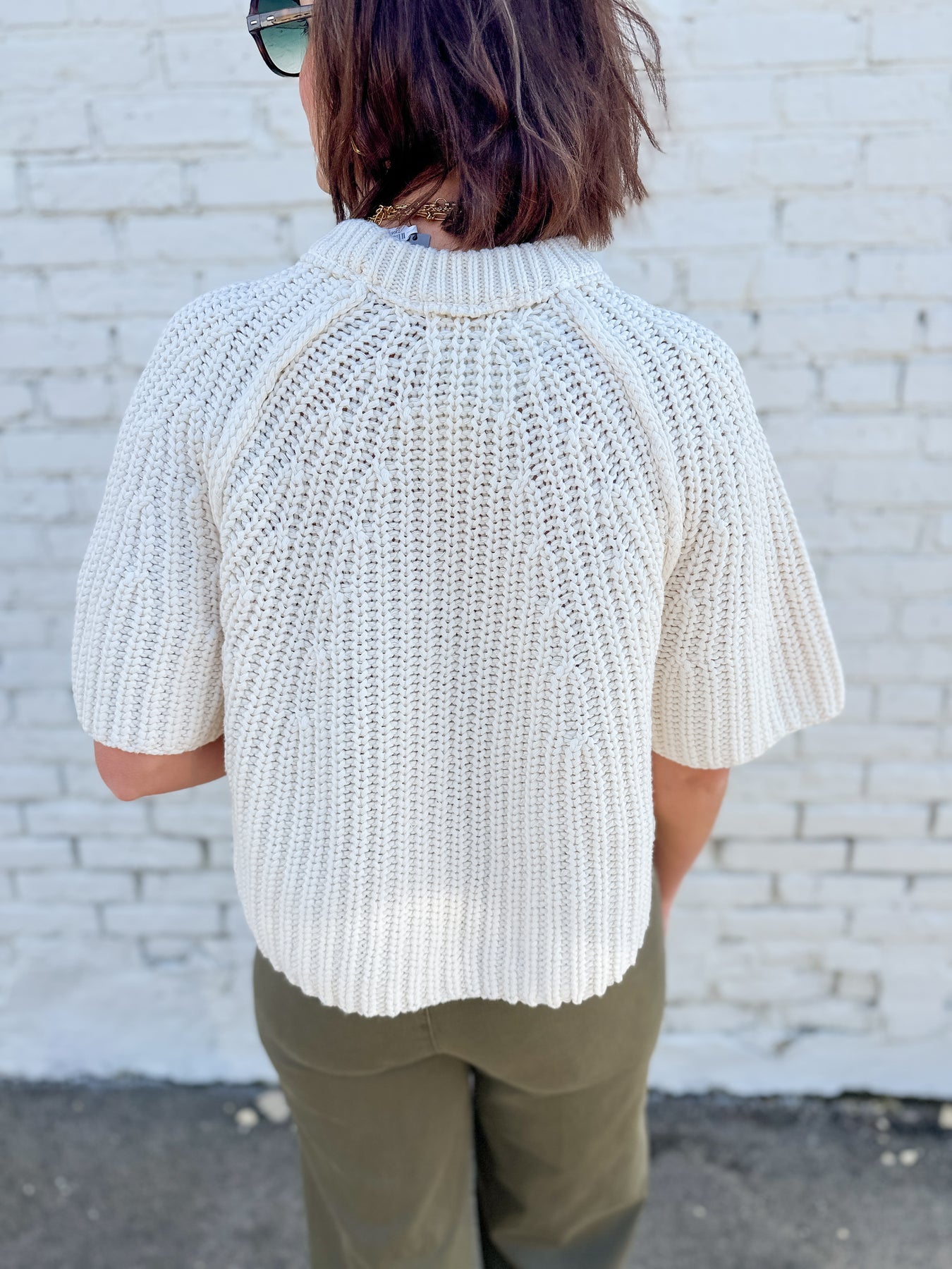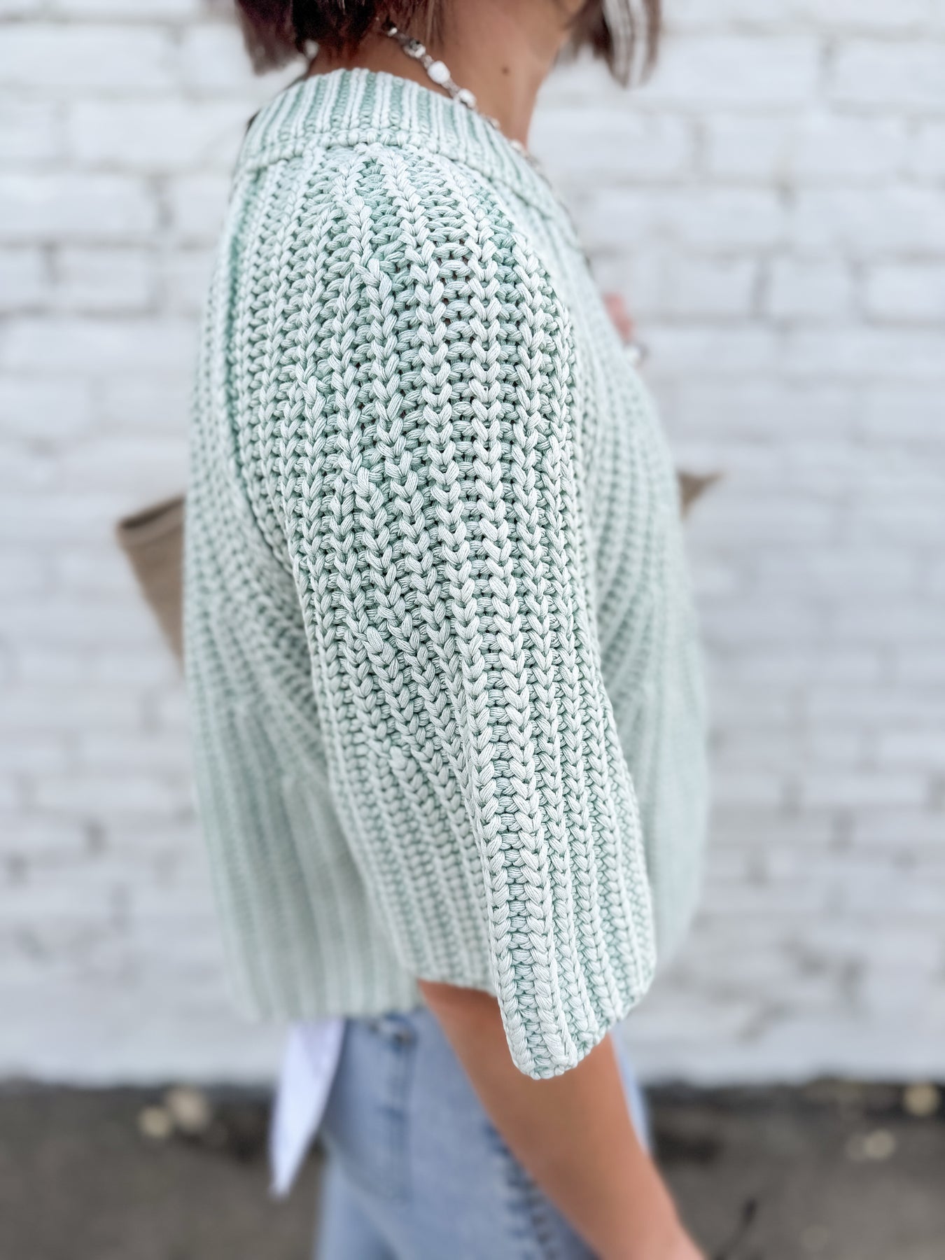 This gorgeous sweater tee is a must have in your closet. It brings the easy wear style of a tee shirt in a sweater fabrication. It's relaxed fit makes it pair well with any style of bottom. Beautiful classic knit construction in 3/4 sleeve for a polished, effortless look.
