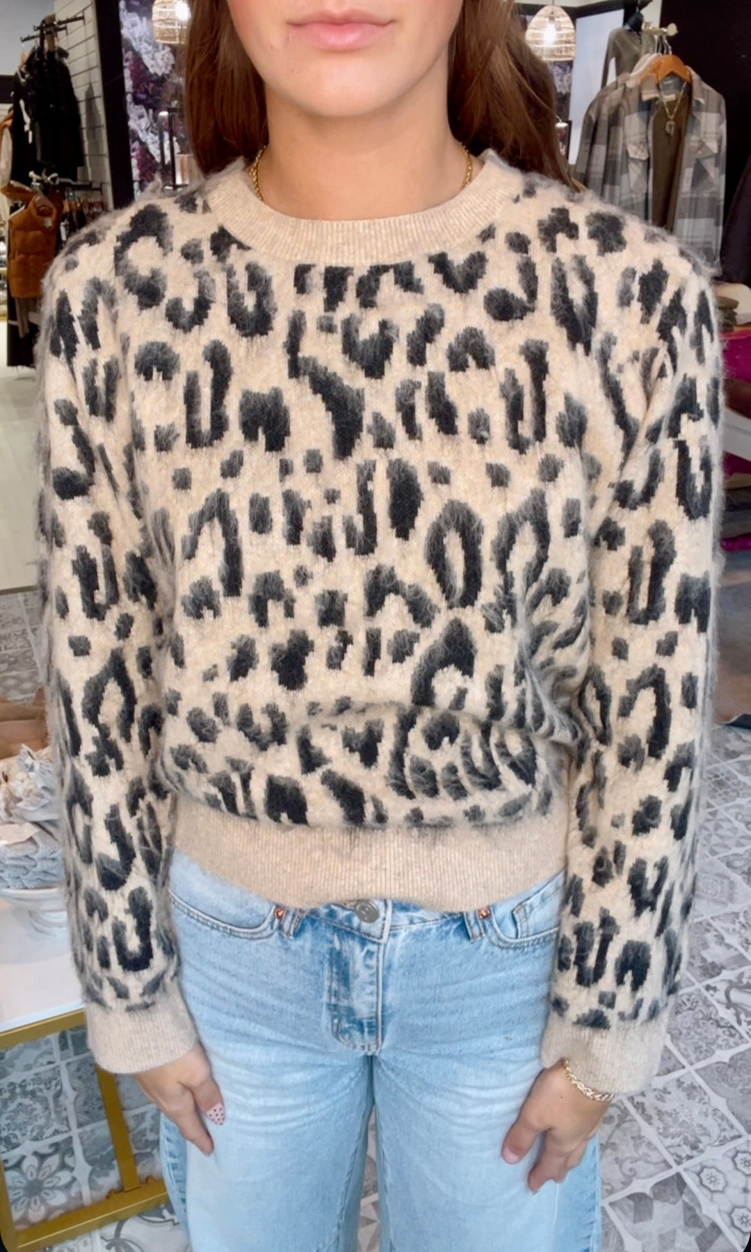 Stay cozy and stylish with The Mina Sweater. Its adorable leopard print adds a playful touch to this versatile under layer. Stay warm and look good at the same time!
